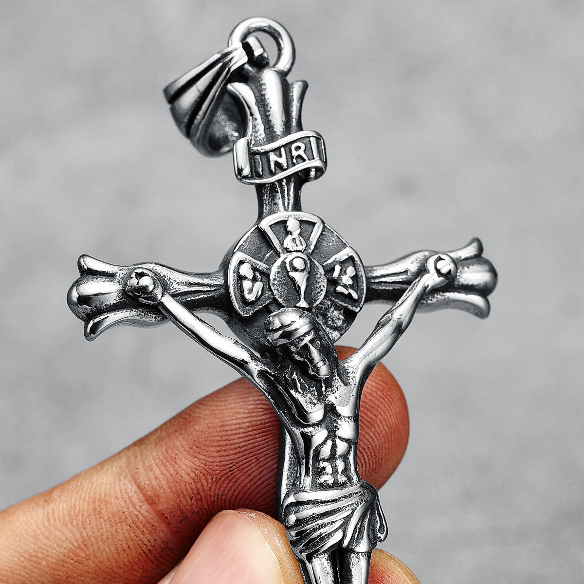 Collar con cruz 3D de acero y titanio estilo vintage artesanal de Amén