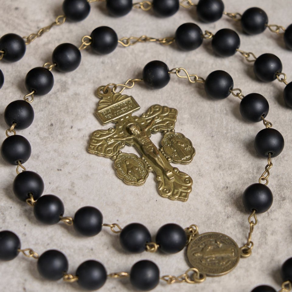 Rosario con crucifijo de San Benito con ágata negra | Amen Artisan