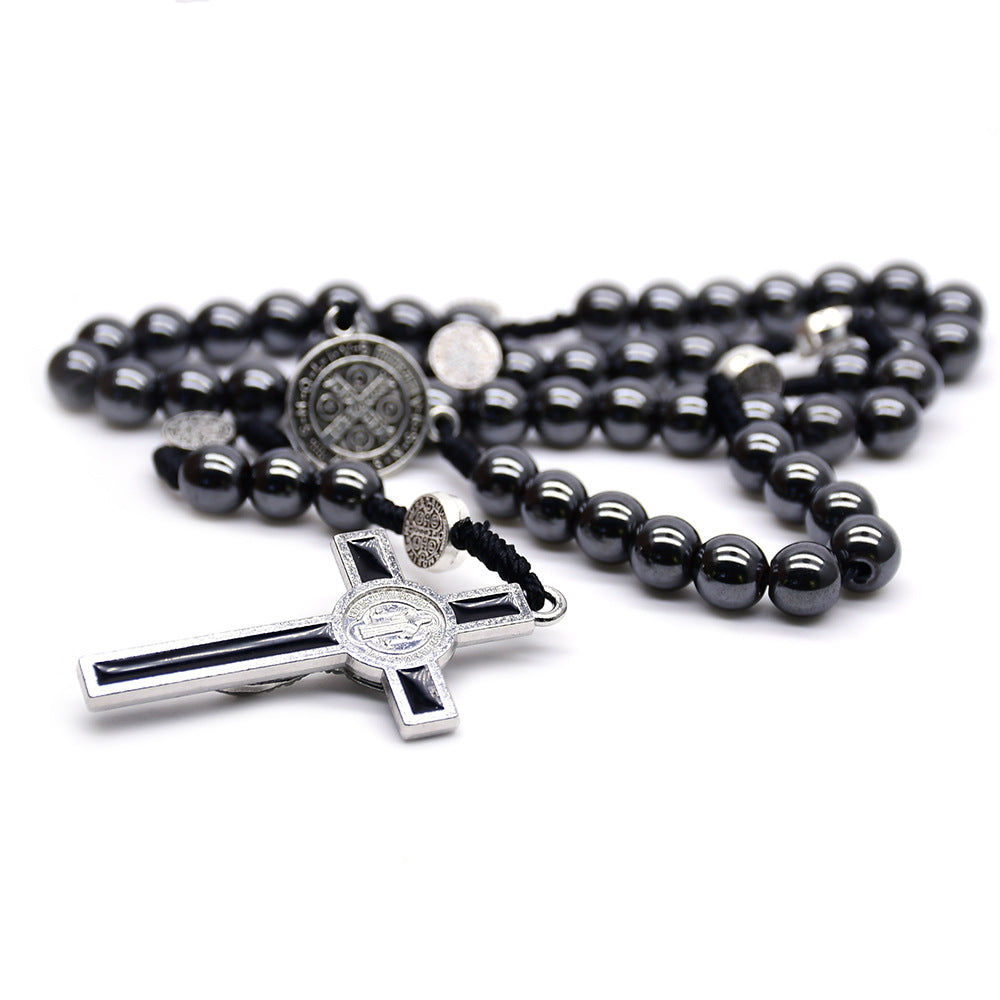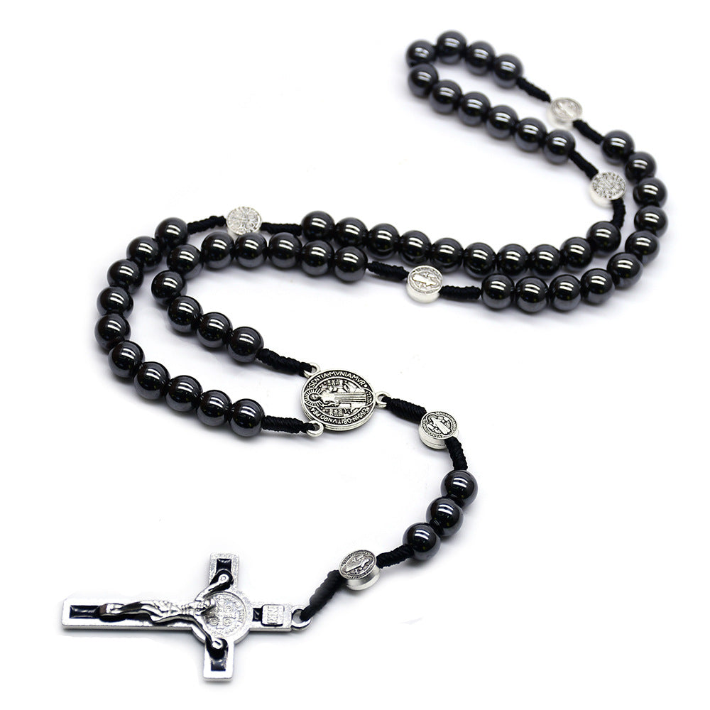 Rosario Crucifijo con Cuentas de Hematita Amén Artesano