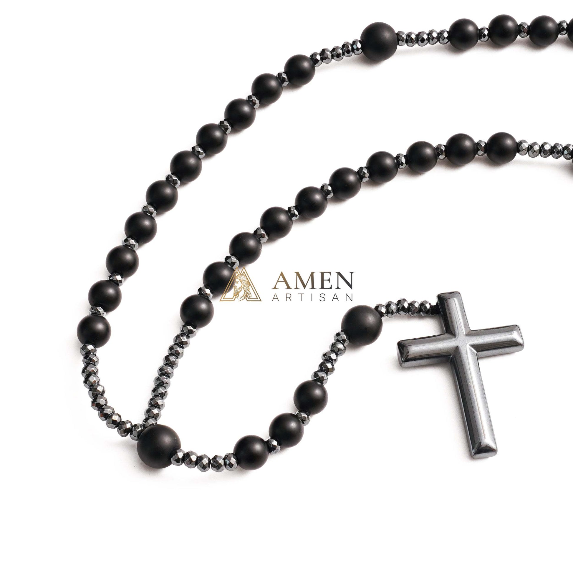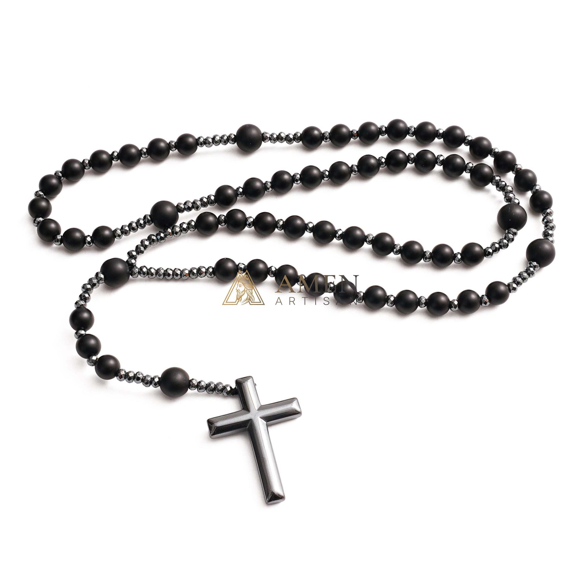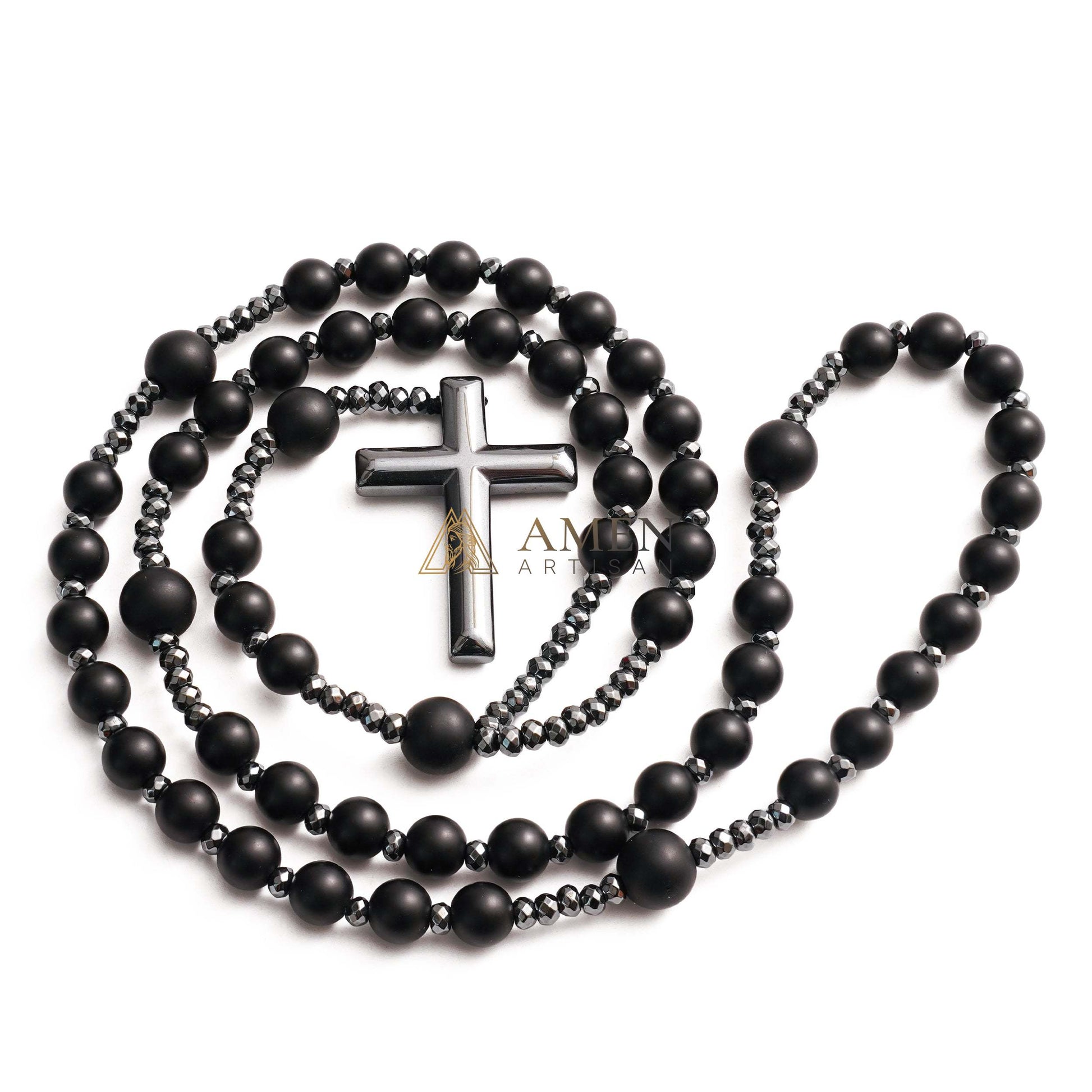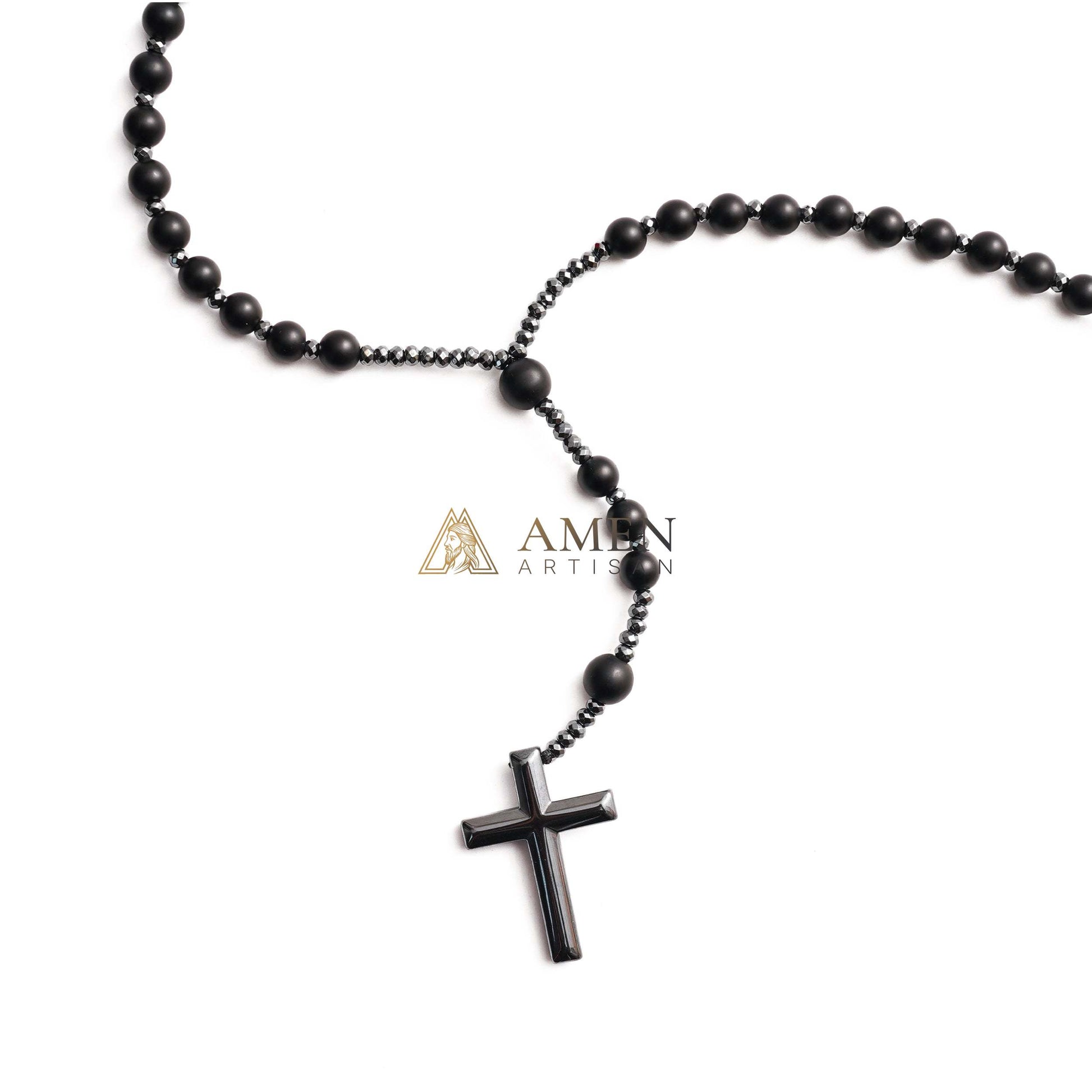 Black Onyx Cross Rosary Amen Artisan