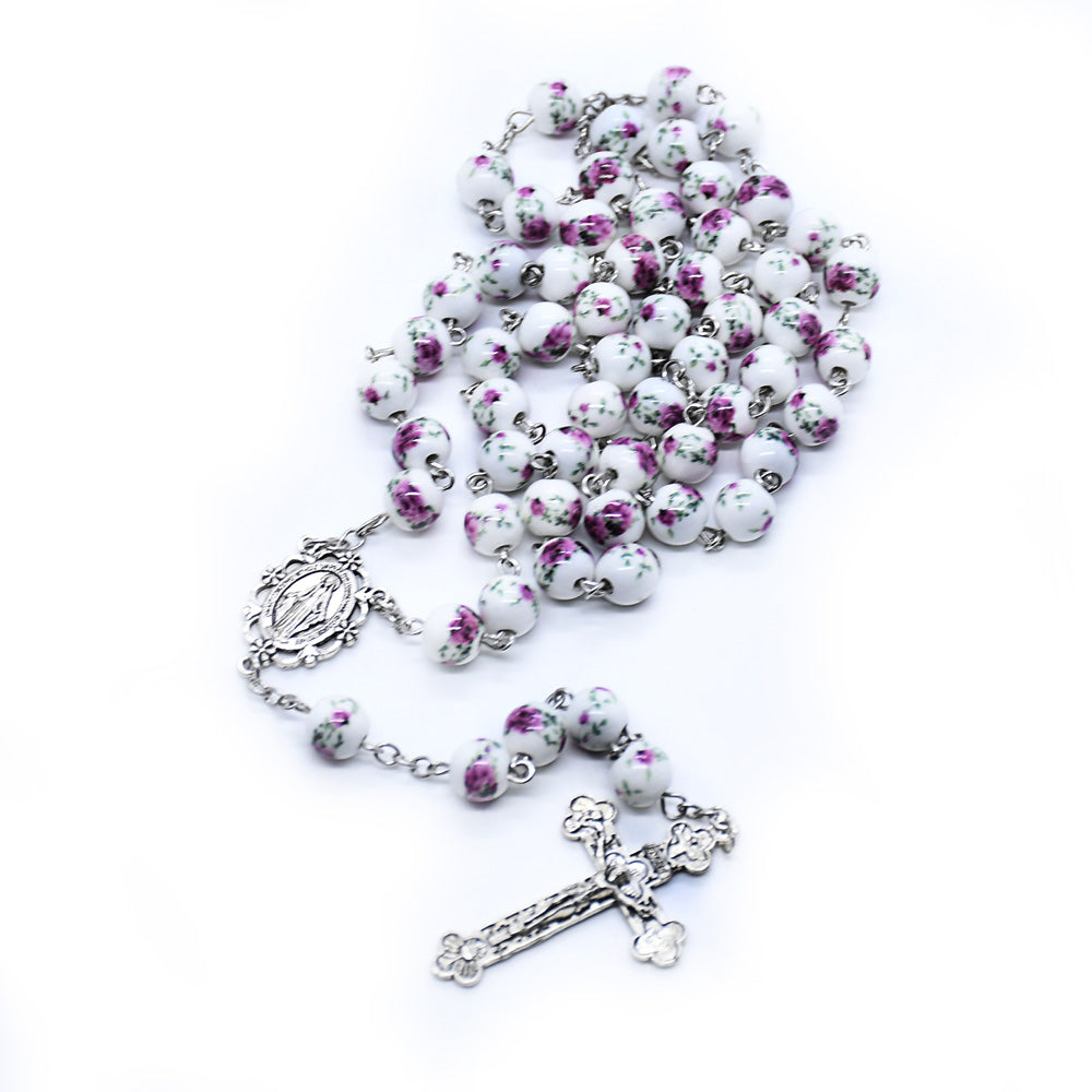 Collar de rosario de cerámica con cuentas de la Virgen María