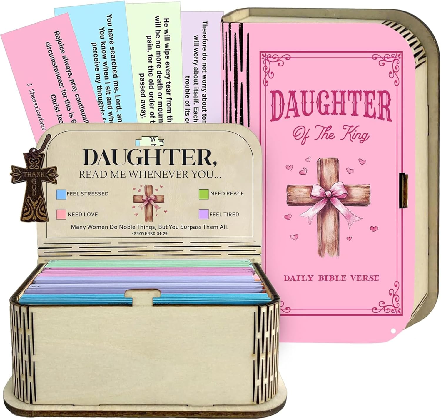 Compact and portable, this Scripture box becomes a steady spiritual companion—inviting you each day to pause, reflect, pray, and reconnect with God. Whether starting your morning with a verse or ending your day with quiet meditation, it brings peace and grounding to your devotional rhythm.