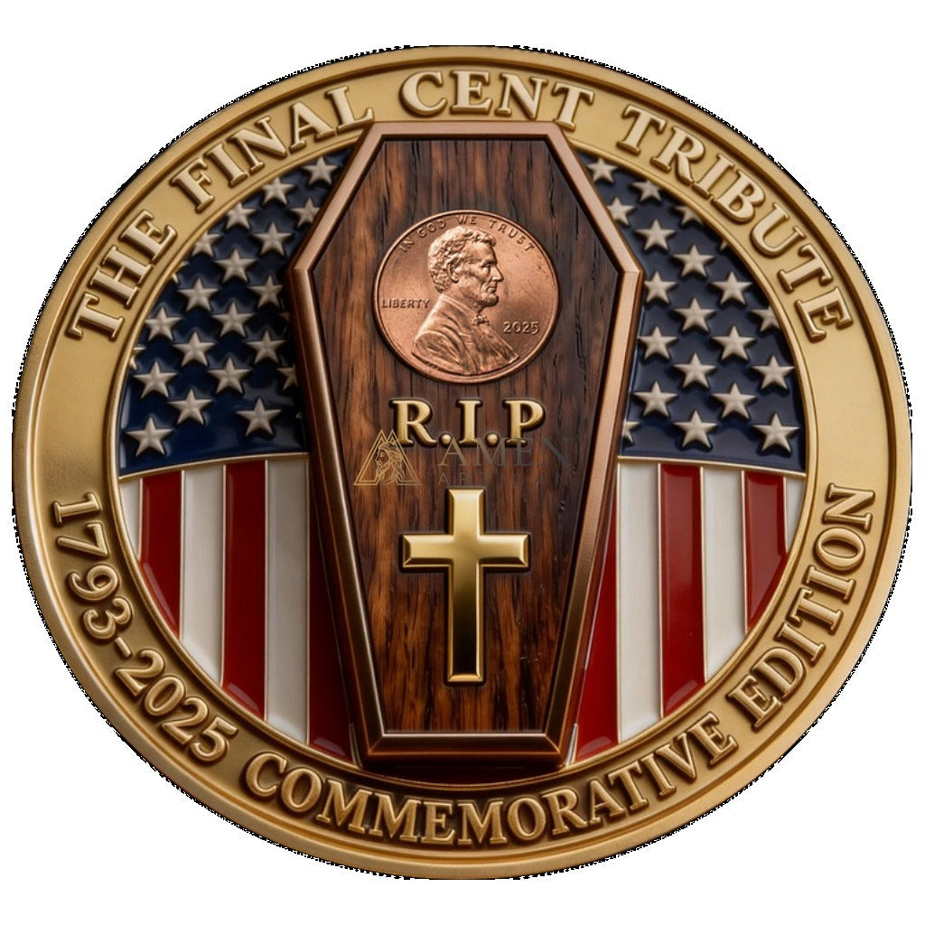 This Jesus & The Last Cent Tribute Commemorative Coin is a dual expression of faith homage and historical remembrance: marking the discontinuation of the U.S. Lincoln Penny, it combines the image of Jesus with penny elements, paired with a "Final Tribute" theme, condensing "faith protection and historical sentiment" into a highly collectible memorial piece.