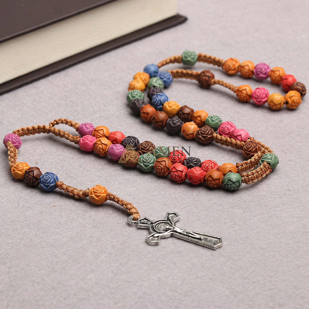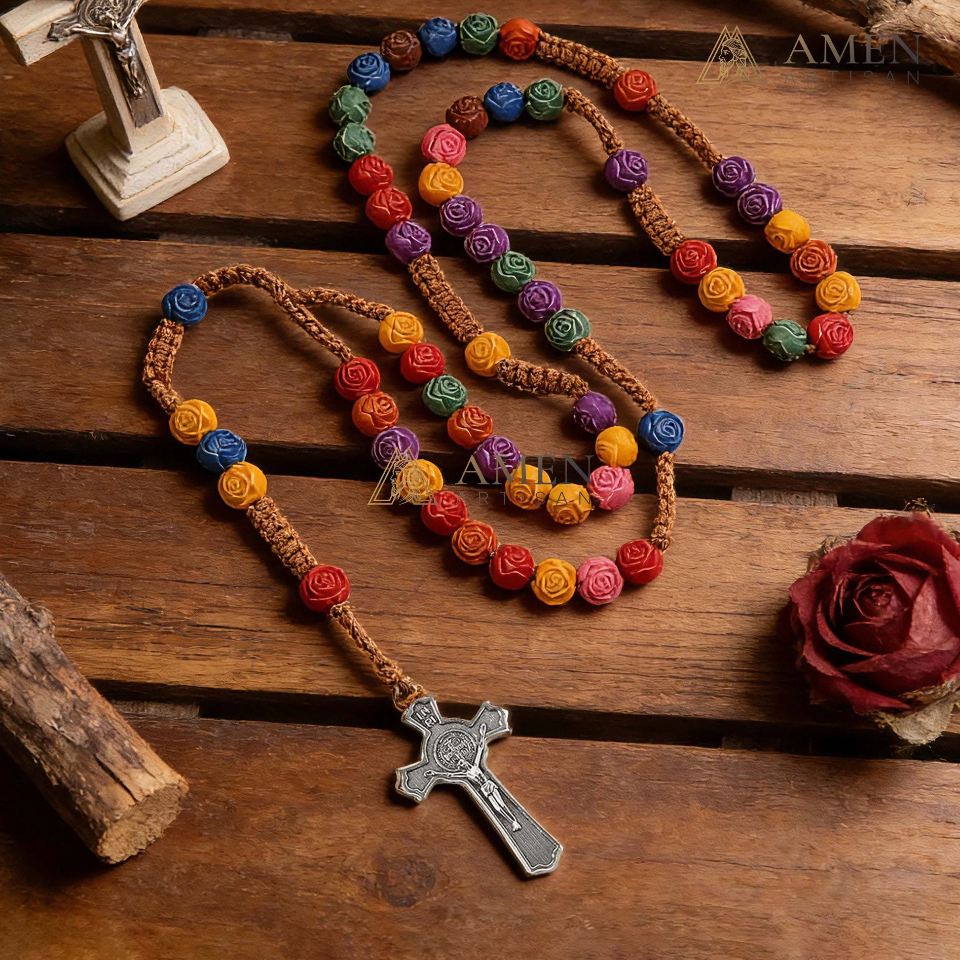- Abraza la fe y la belleza con este rosario de cuentas de rosas de colores .