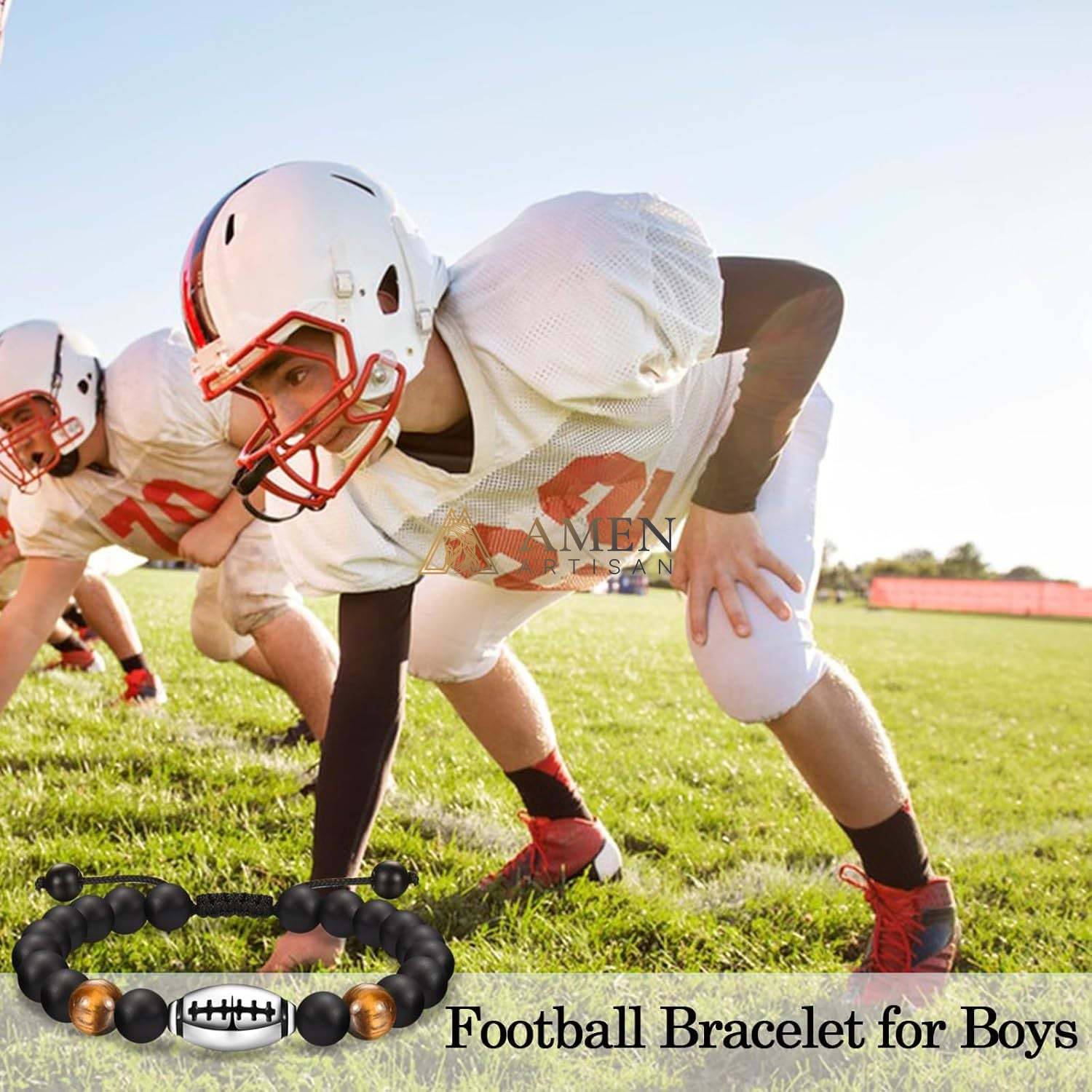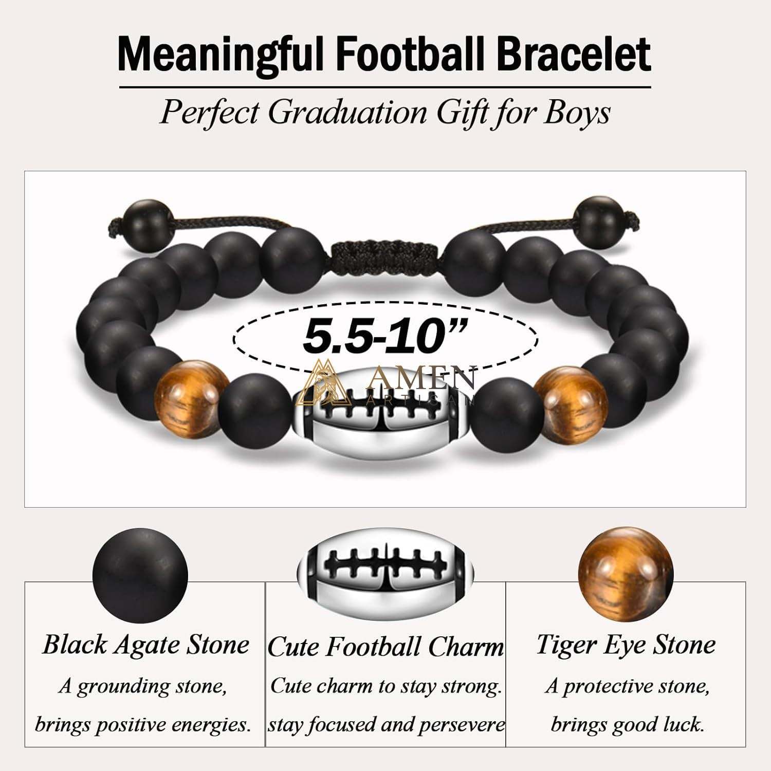 Natural Stone Bead Football Braided Bracelet Amen Artisan