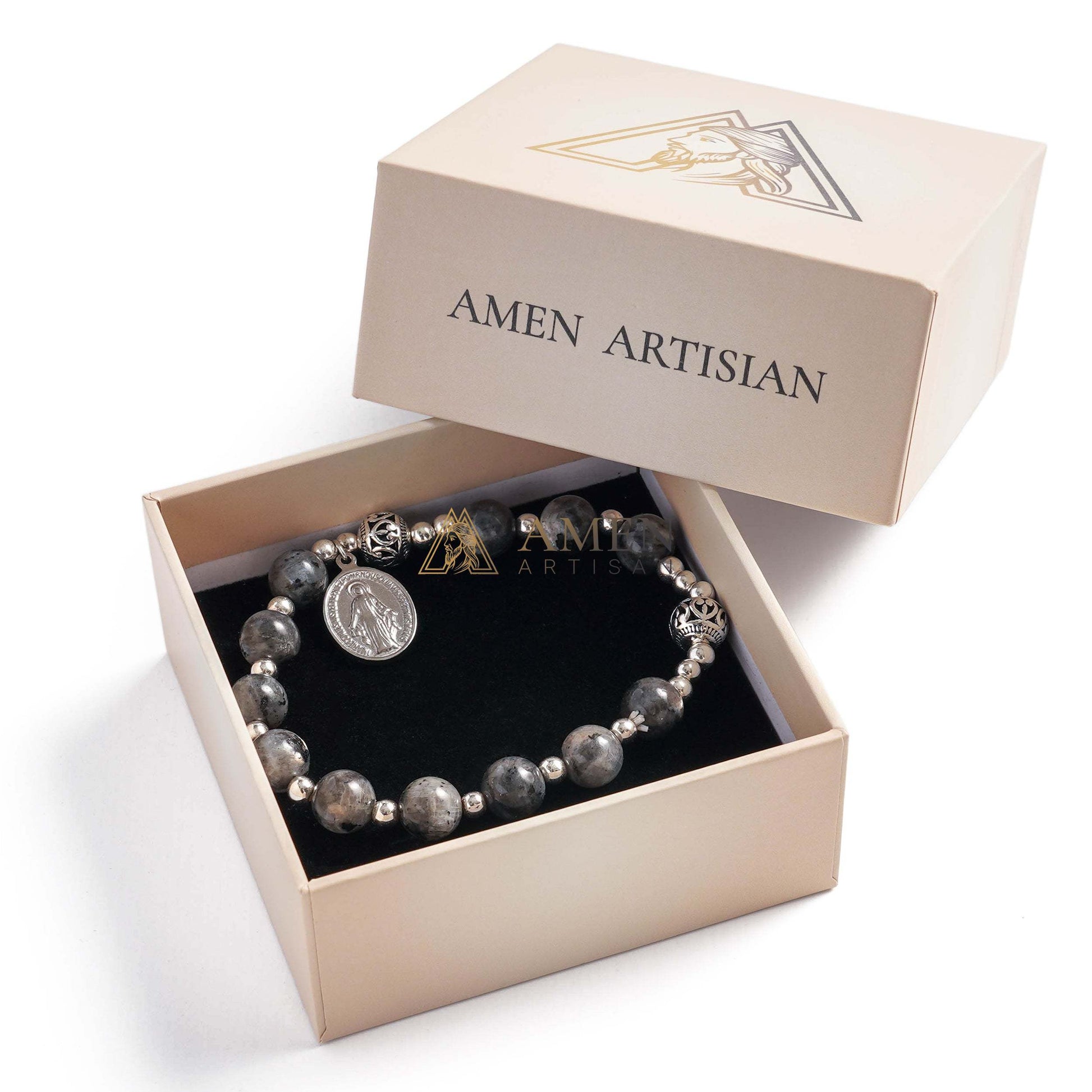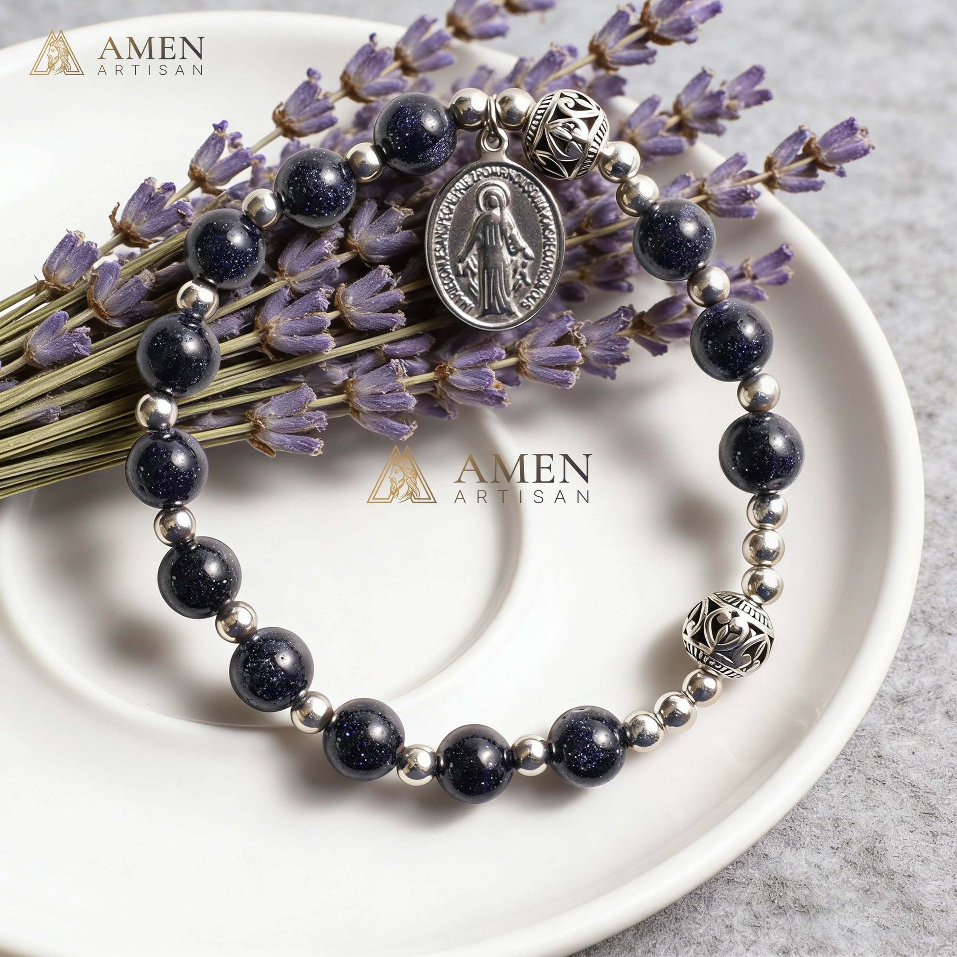 Crafted with luminous blue sandstone beads, each bead sparkles like a night sky filled with stars, symbolizing inspiration, calm, and inner assurance.