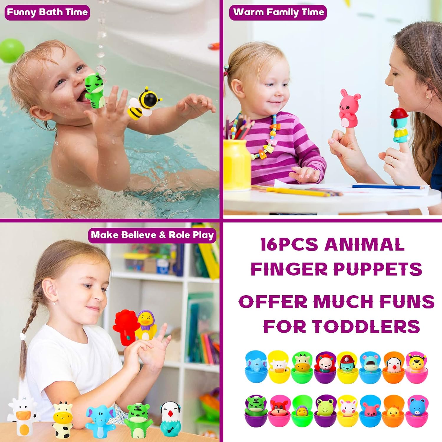 Includes colorful Easter eggs and adorable animal finger puppets (giraffe, rabbit, elephant, chicken, cow, pig, zebra, bee, crocodile, frog, and more). Each egg holds a surprise puppet for excitement every time you open one.