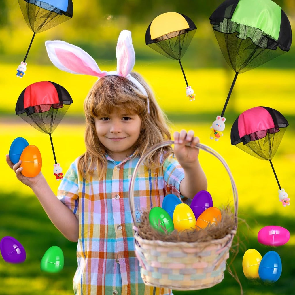 Includes bright Easter eggs + bunny parachute toys in 6 vivid colors, perfect for collecting and festive surprise.
