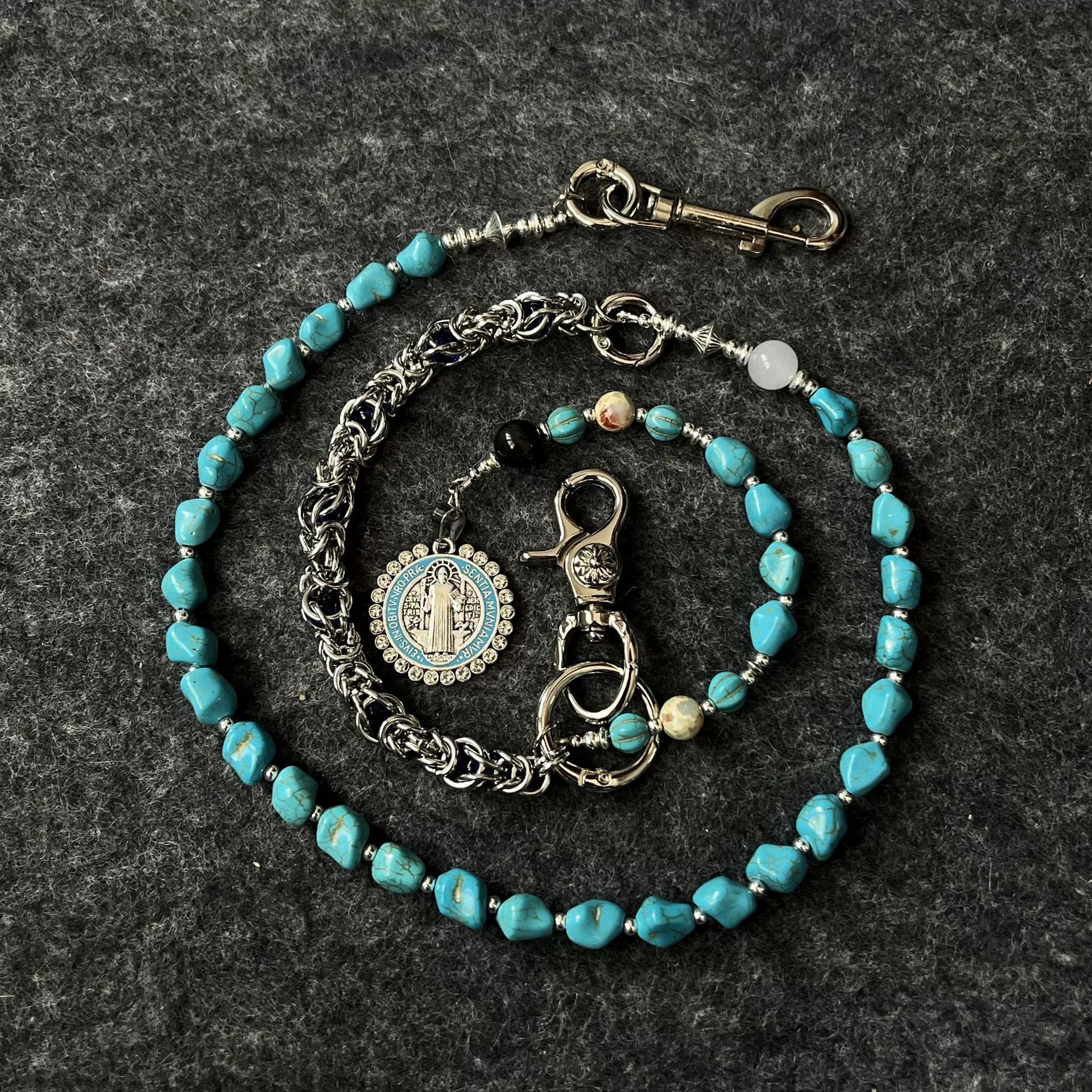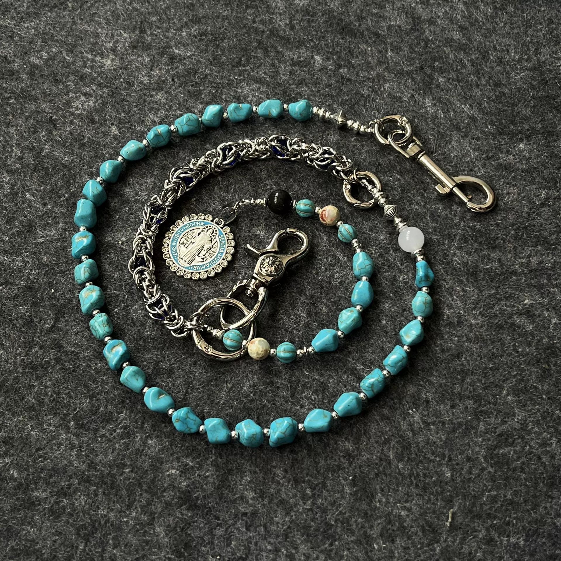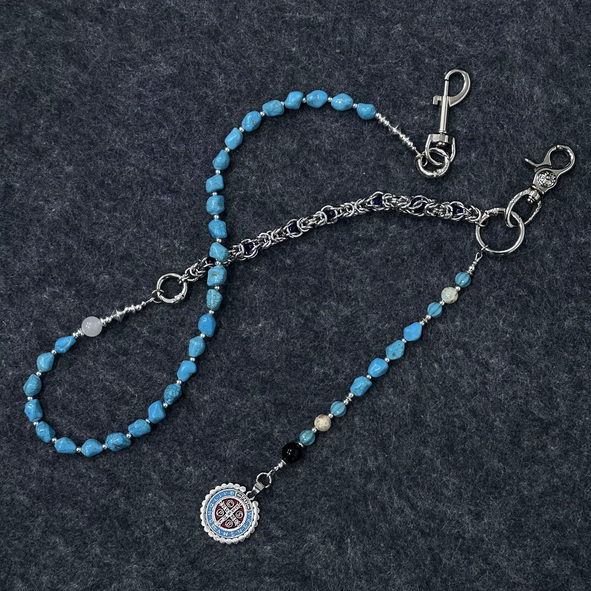 Amen Artisan Turquoise Saint Benedict Medal Beaded Waist Chain