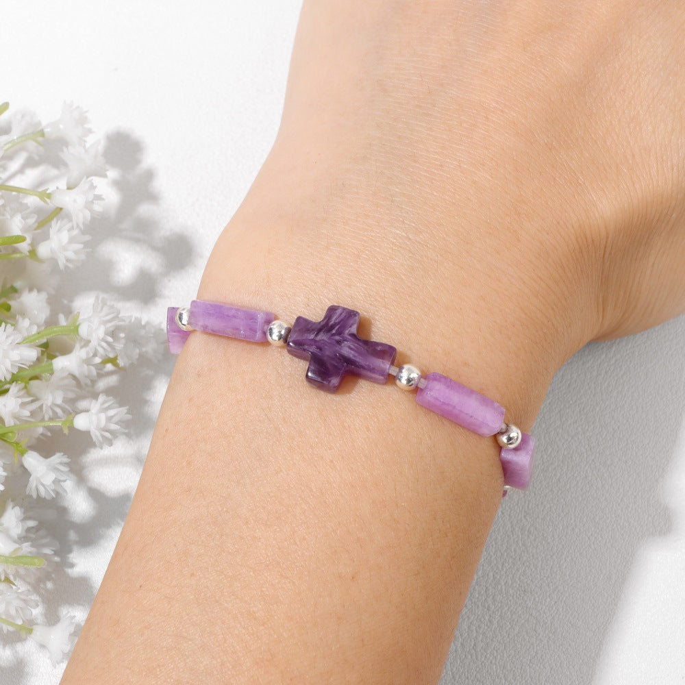 Cross Purple Stone Bracelet Amen Artisan