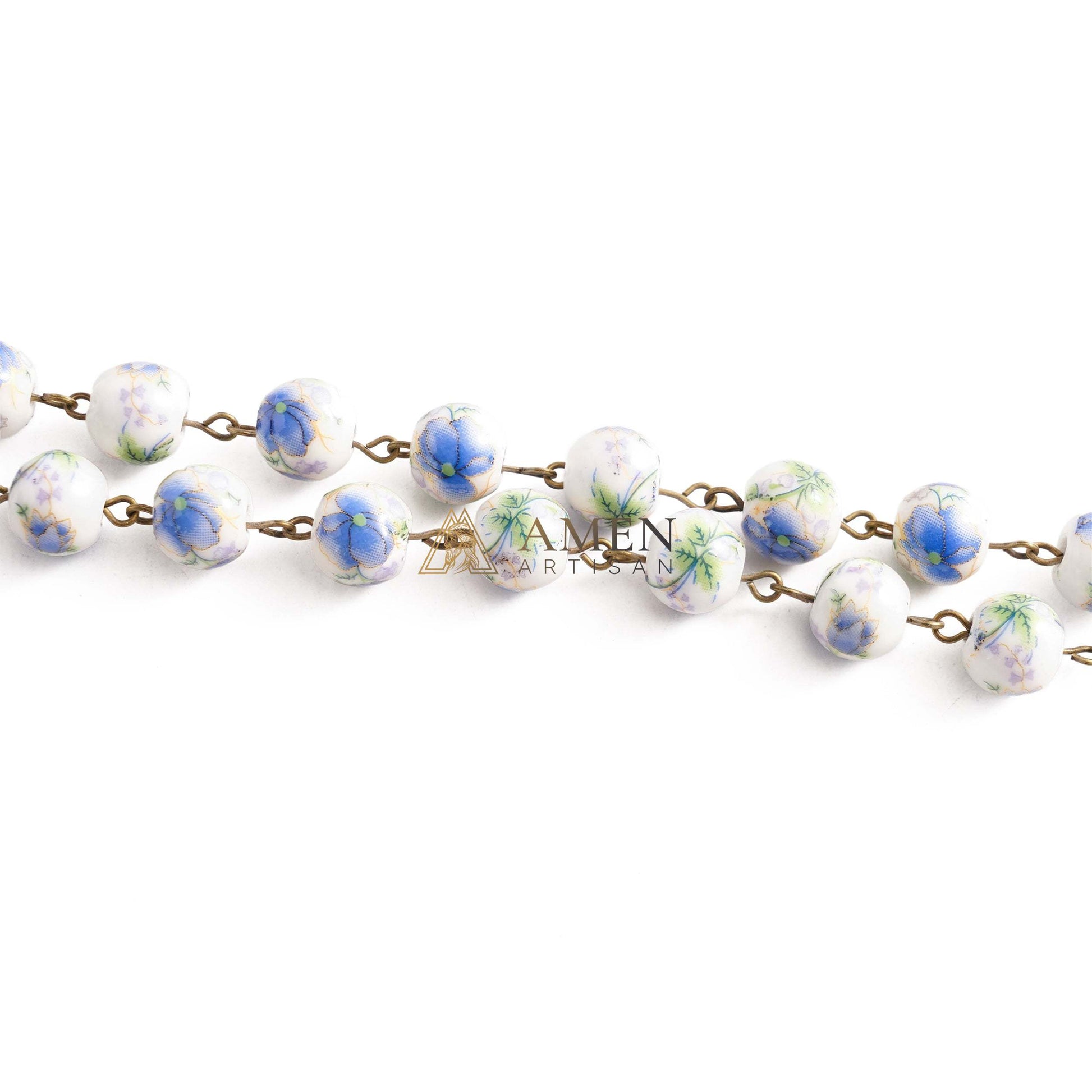 Handcrafted Ceramic Beads – Each bead is carefully glazed with delicate floral and plant motifs, symbolizing life, purity, and devotion.