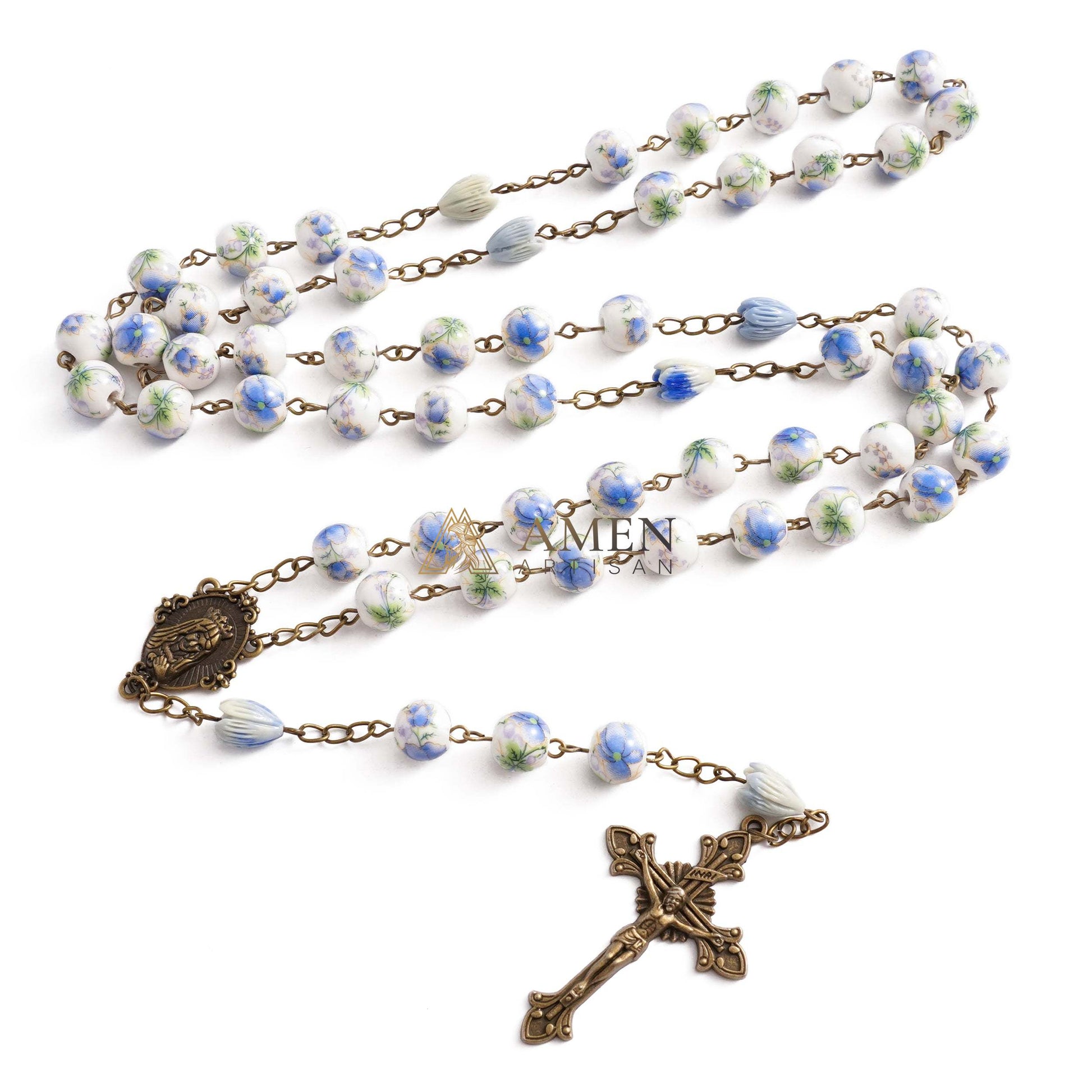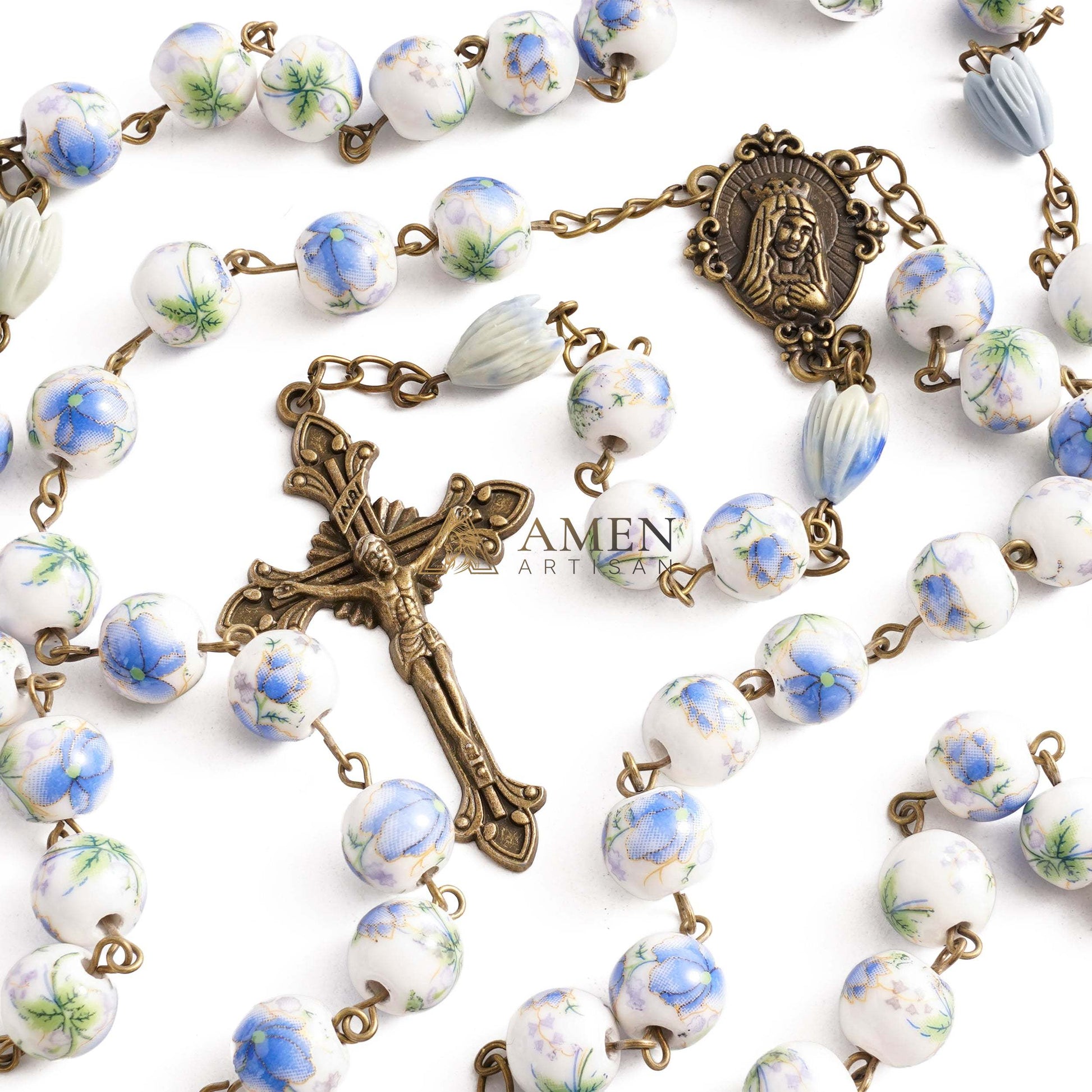 Flowers and Plants Ceramic Rosary Amen Artisan