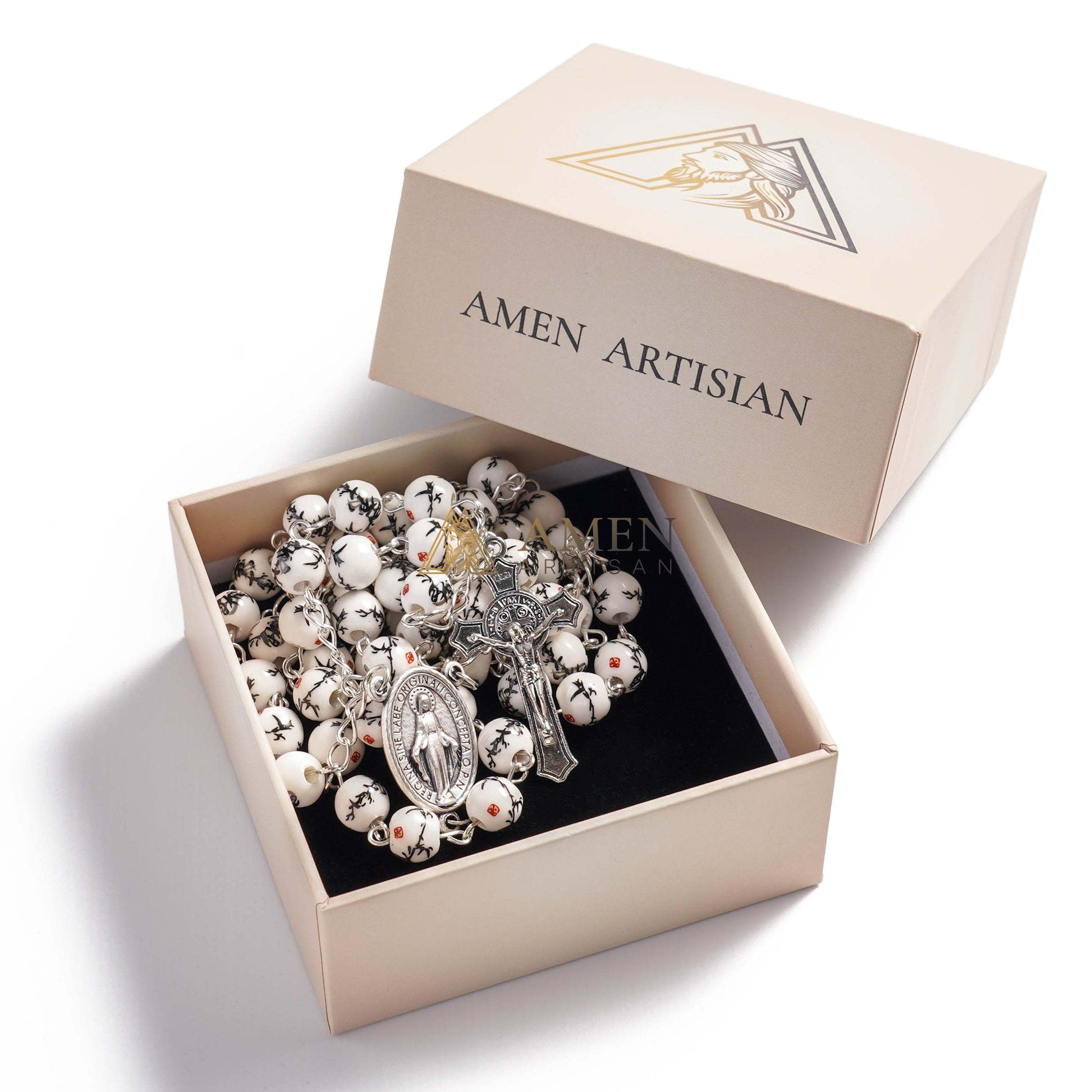 Design: Classic rosary shape + ink bamboo ceramic beads, paired with Miraculous Medal and crucifix — elegant & unique style, fitting the core theme of "prayer & protection"