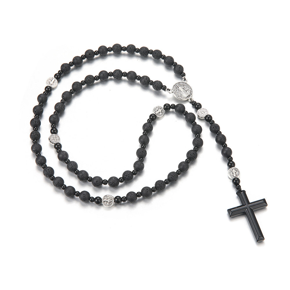 Lava Stone Beads Saint Benedict Medal Rosary Amen Artisan