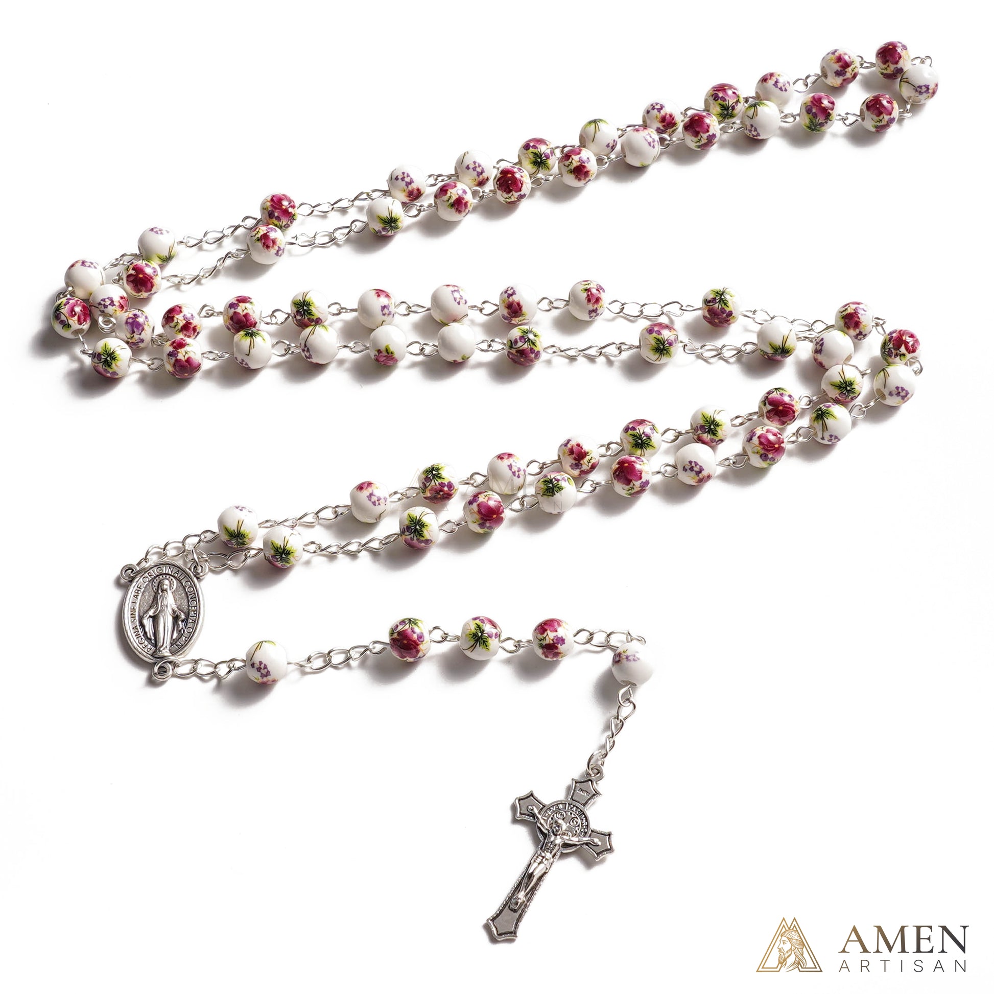 Embrace thoughtful reflection and devotion with this handcrafted Pansy Ceramic Rosary. Each ceramic bead showcases the charming beauty of the pansy flower, symbolizing remembrance, love, and thoughtful reflection, turning every prayer into a meaningful, meditative experience.