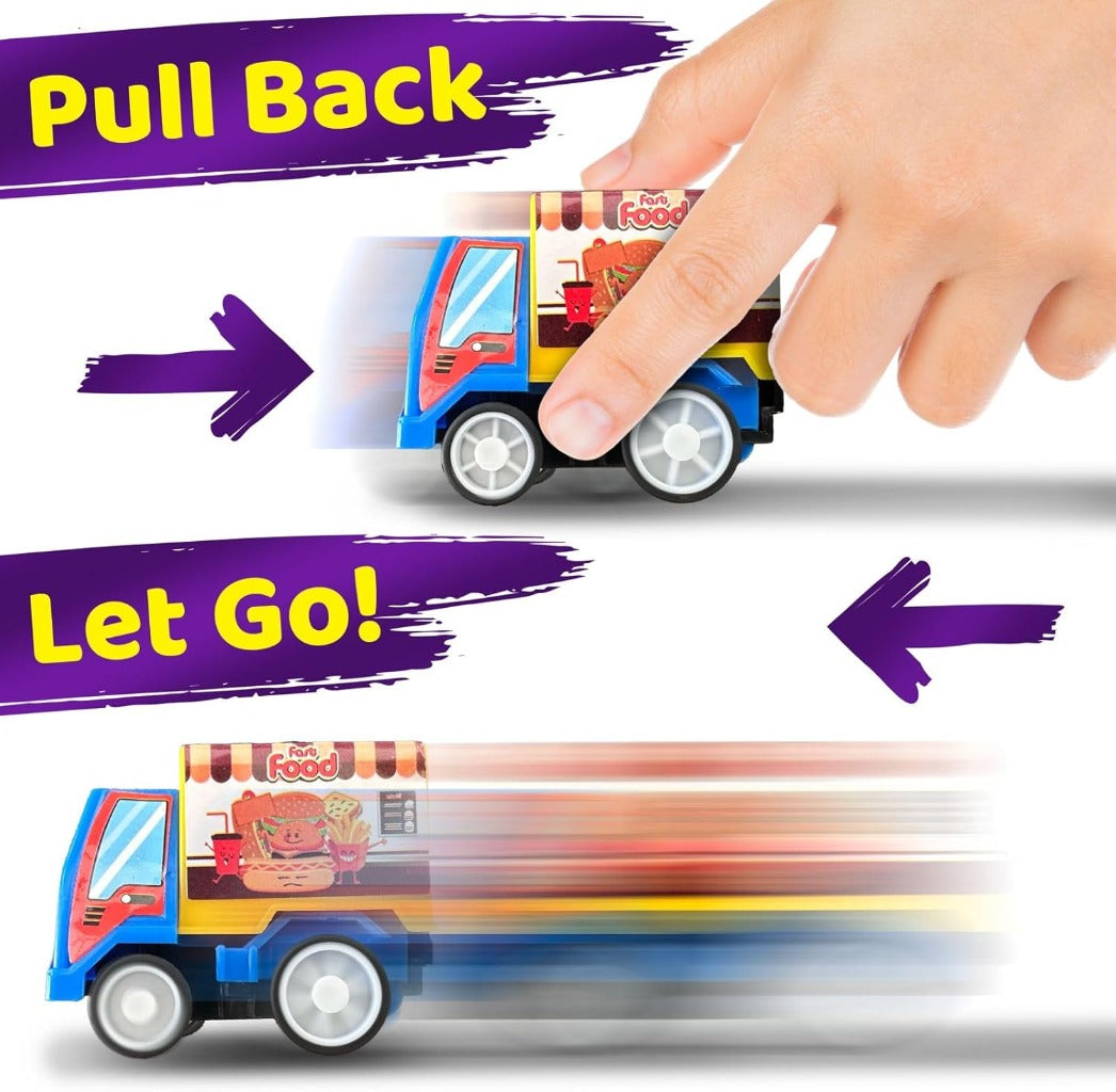 Pull the truck back gently, release, and watch it zoom forward. No batteries required — durable, convenient, and fun anywhere.
