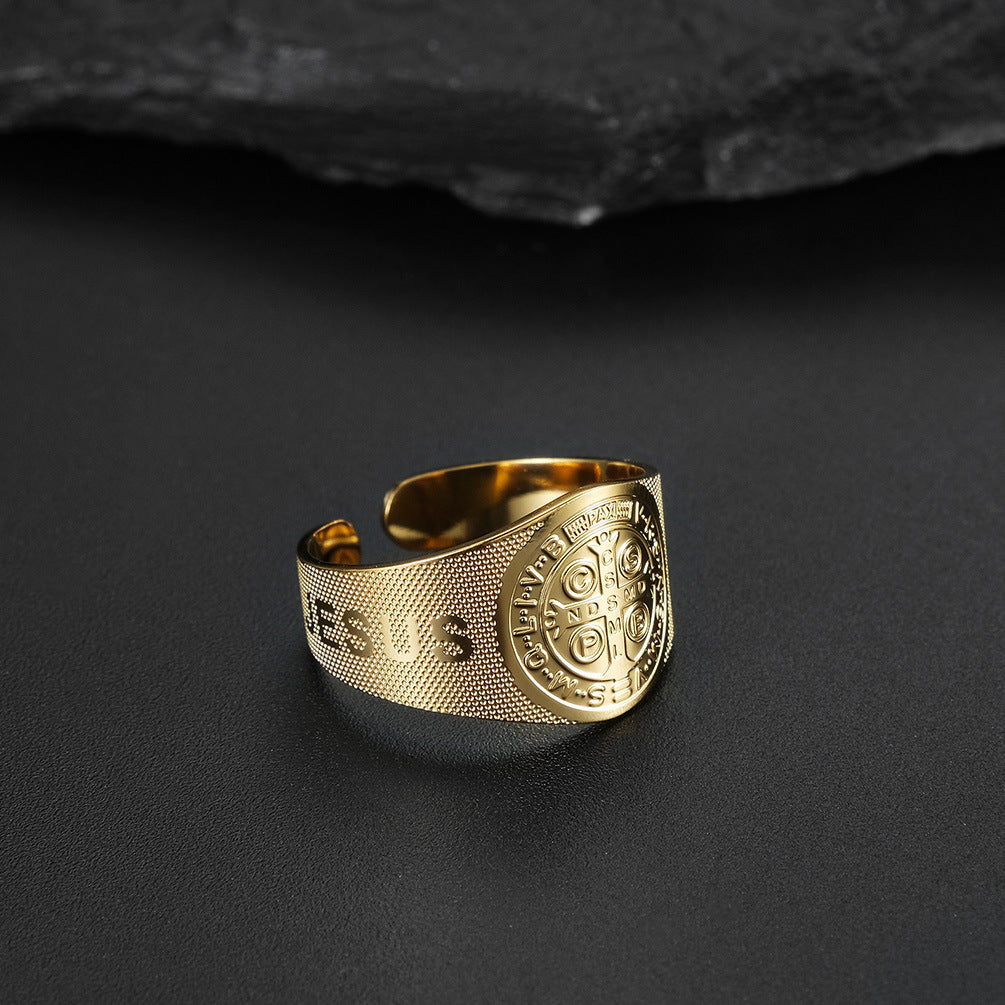 Saint Benedict Cross & Inscriptions "JESUS" Ring Amen Artisan