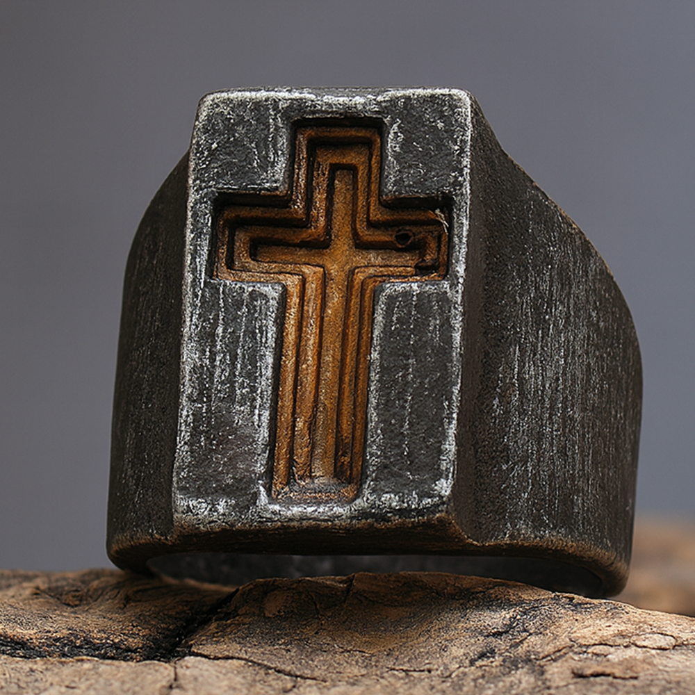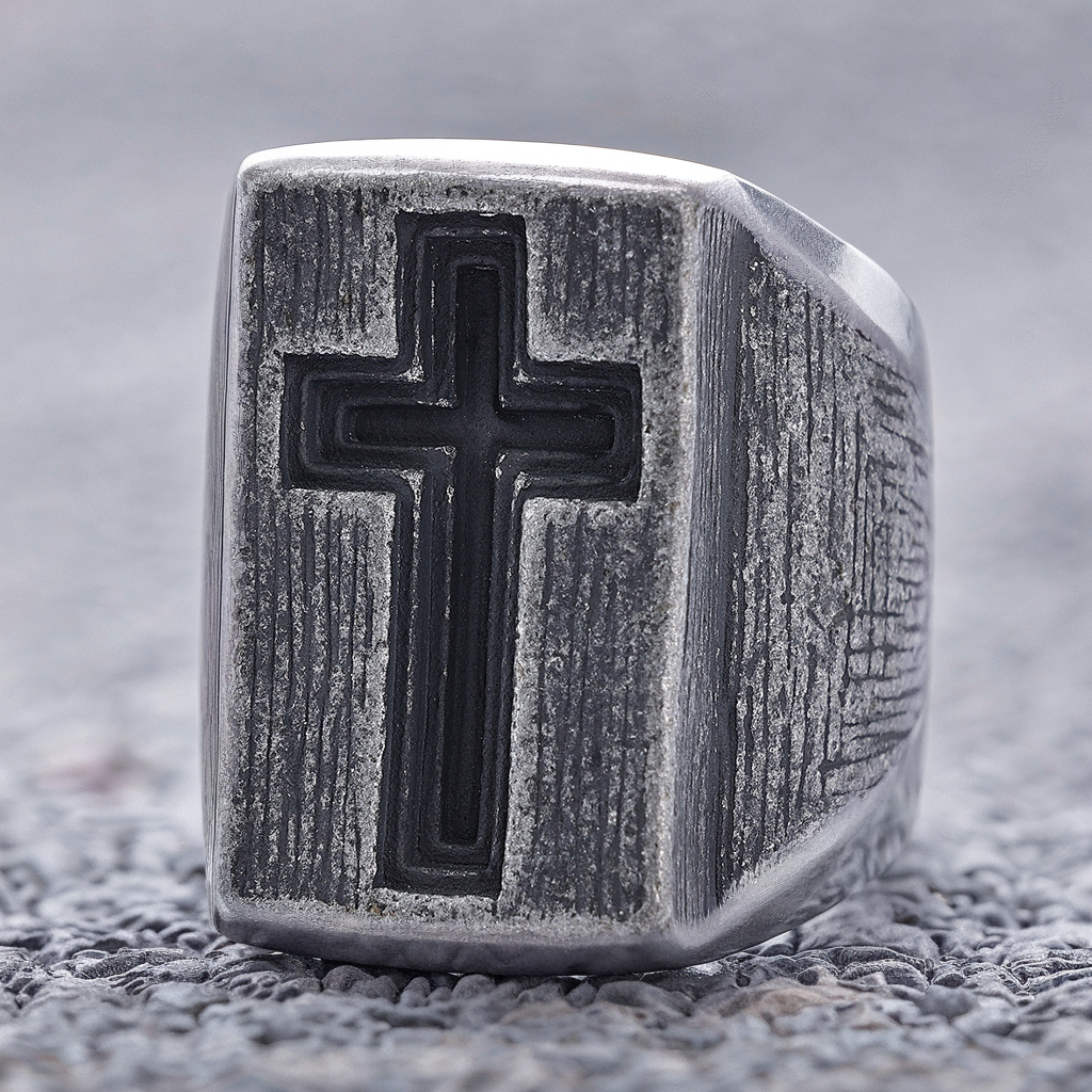Antiqued Cross Signet Ring Surgical-grade 316L Stainless Steel Amen Artisan
