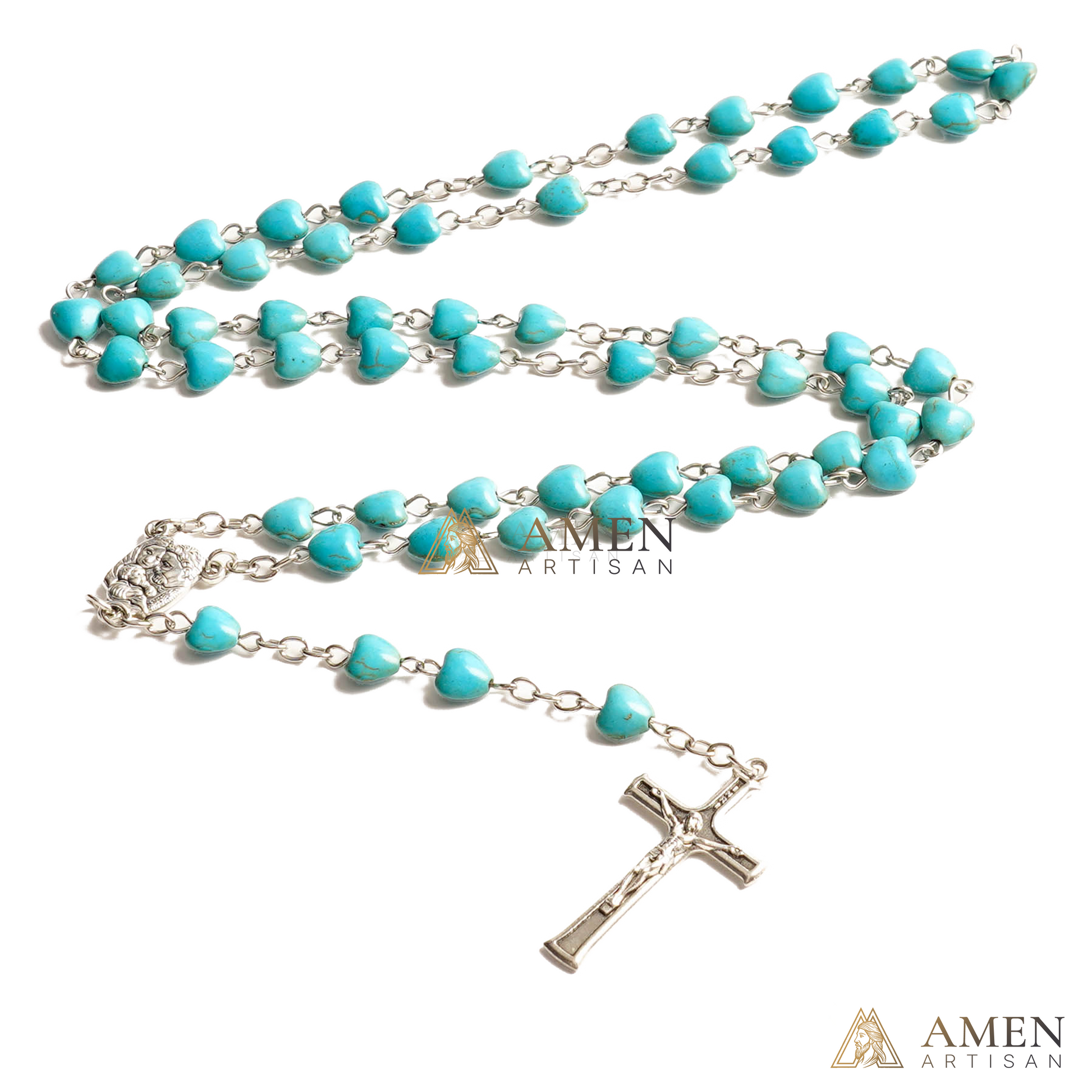 The Turquoise Heart Rosary is a prayer piece inspired by love, sincerity, and faithful devotion.