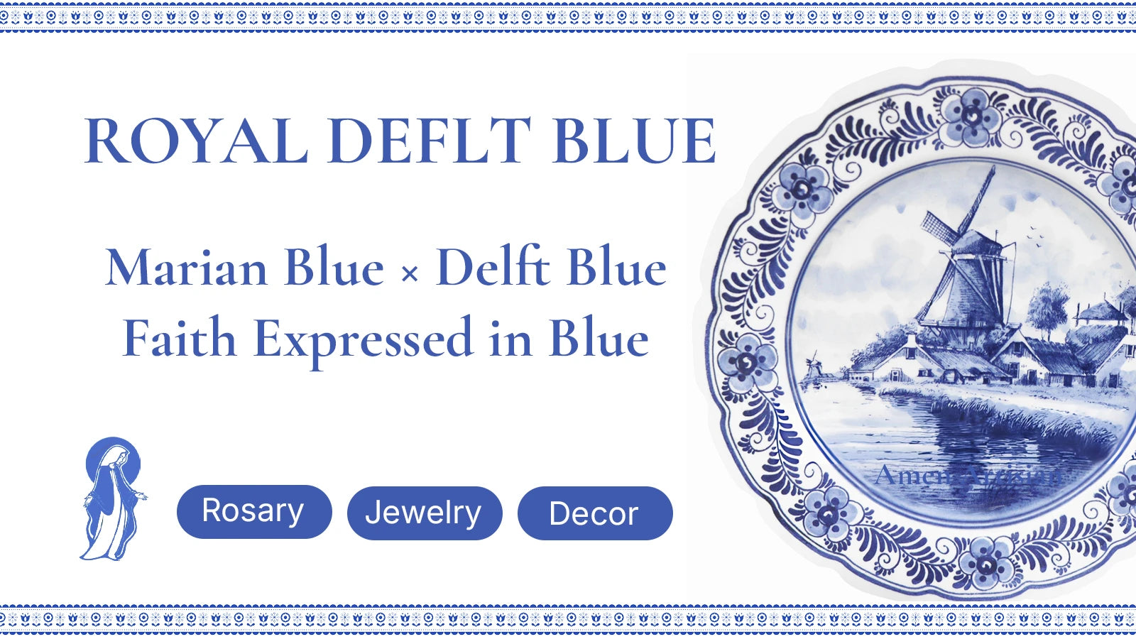 Delft Blue Ceramic Tabletop Ornament Amen Artisan