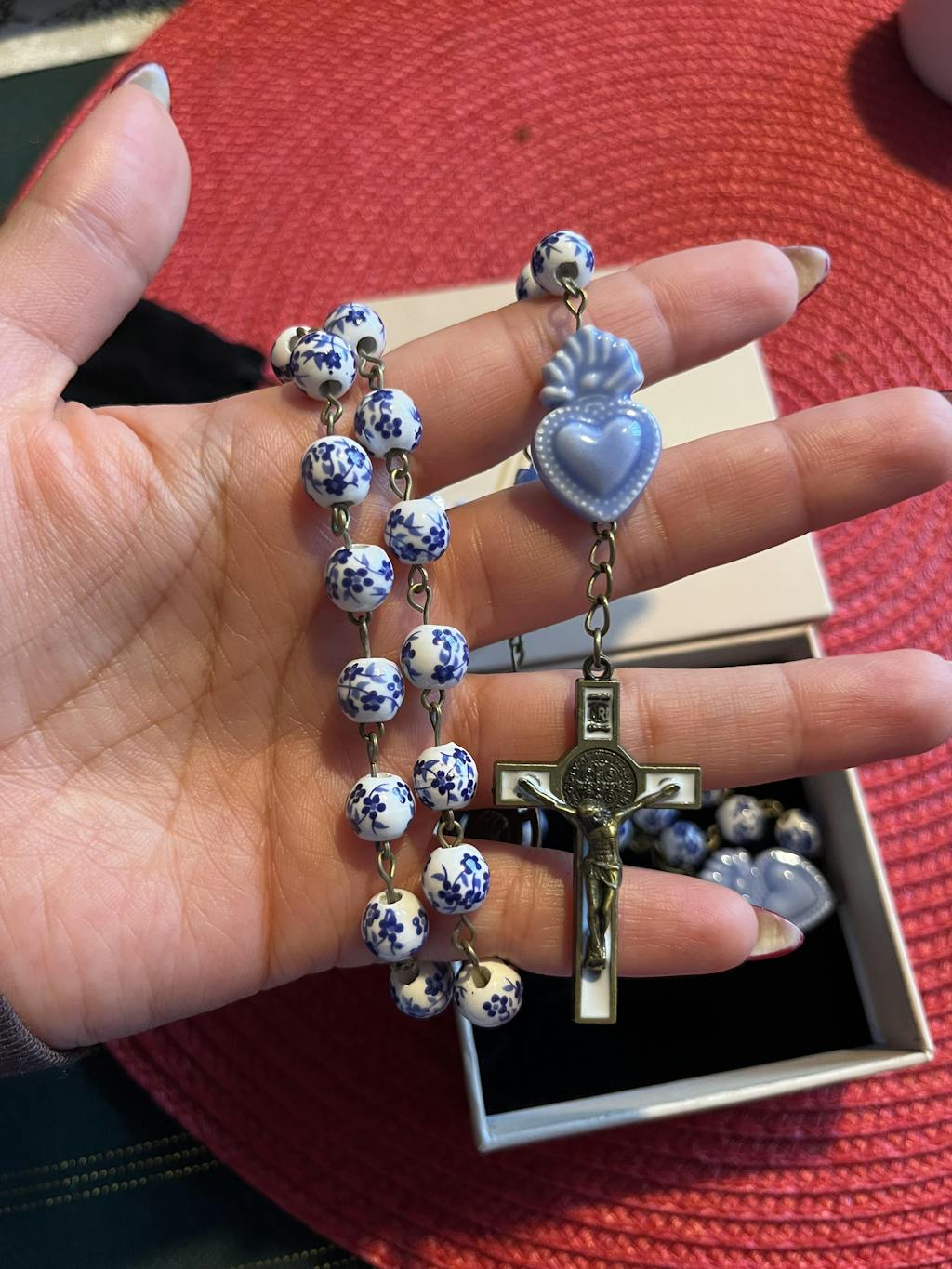 Seja para oração diária, como um presente religioso atencioso ou como item de colecionador, este rosário carrega tanto simbolismo sagrado quanto beleza artesanal.