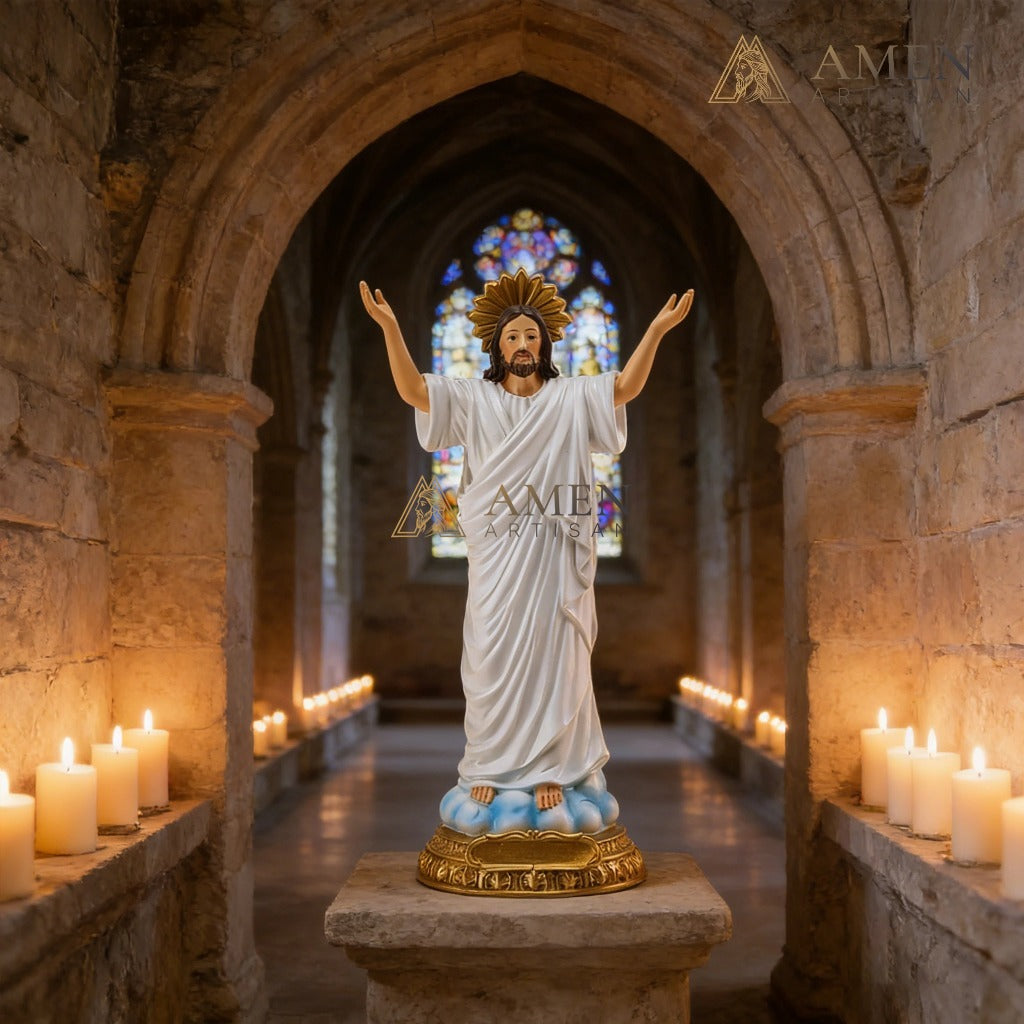 His raised hand symbolizes blessing and guidance, while His calm presence reassures believers of hope and spiritual renewal. The statue serves as a constant reminder of God’s closeness in daily life.